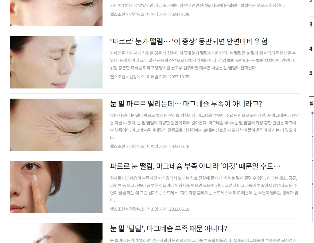 - 증상 관찰: 눈 밑만 떨리는지, 아니면 입꼬리나 볼까지 같이 떨리는지 살펴보기
