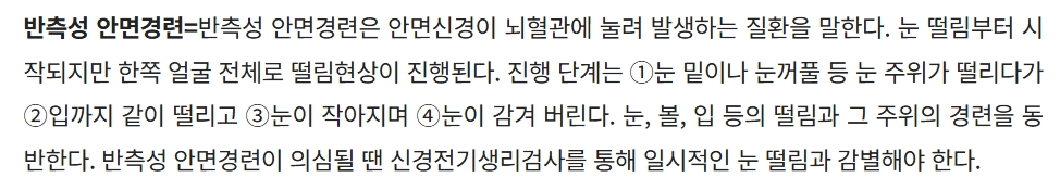 근데 영양제를 잘 챙겨 먹고 푹 쉬었는데도 떨림이 계속된다면, 혹시 얼굴 전체나 입꼬리까지 같이 씰룩거리는지 꼭 확인해 보셔야 합니다. 이런 경우는 단순한 피로가 아니라 반측성 안면경련일 수 있거든요.