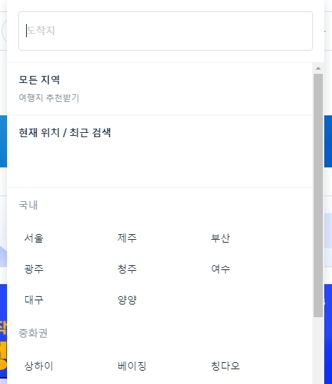 비행기 표를 끊으셨다면 다음은 편안하게 쉴 숙소를 고를 순서입니다. 상단 메뉴에서 숙박 탭으로 이동하신 뒤, 방문할 도시와 날짜를 동일하게 맞춰서 새롭게 검색을 진행해 보세요.